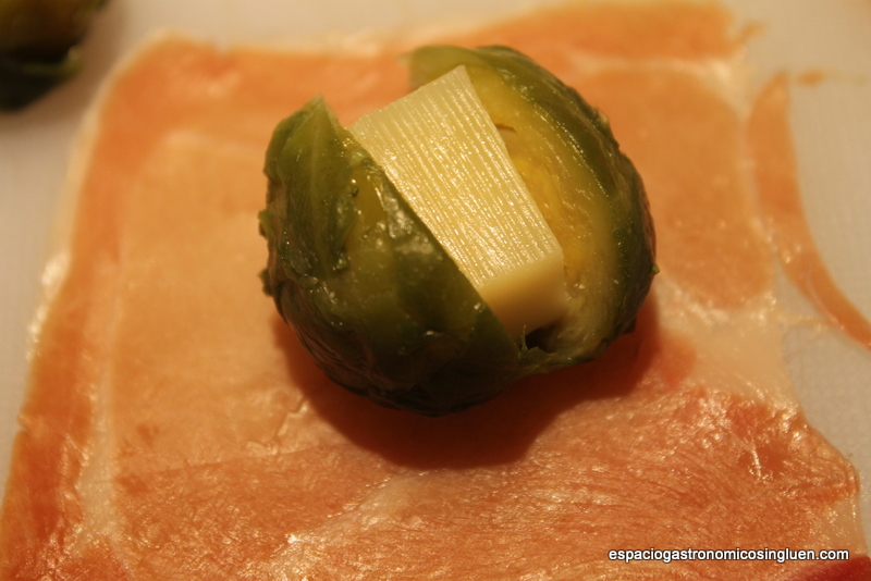 BROCHETAS DE COLES DE BRUSELAS CON JAMÓN Y SALSA ROMESCO